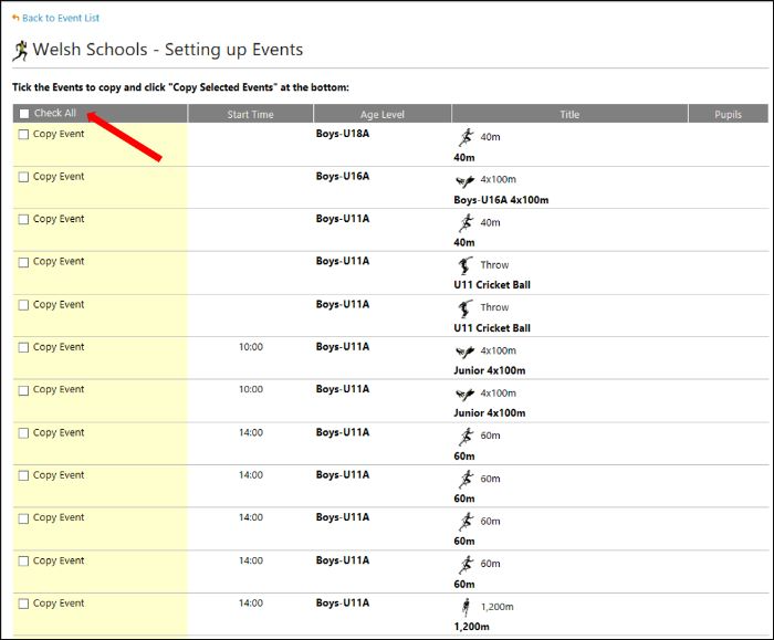 Option 2: Add pupils to individual events once events have been added to the meeting.