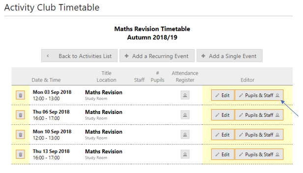 Click Pupils & Staff under Editors next to each session and add the pupils.